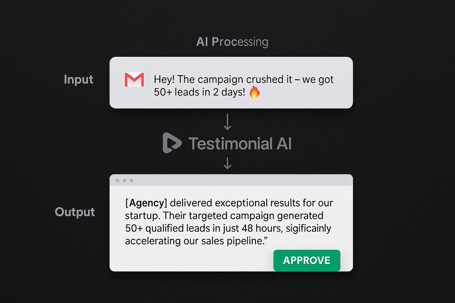 Send the drafted testimonial to your client. They simply click "Approve"—no writing required.